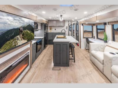 Designed for elevated comfort and confident travel, these travel trailers blend durable aluminum-framed construction with a Platinum Grey fiberglass exterior for lasting style and strength. Inside, solid surface countertops and a spacious king mattress deliver residential-level comfort, while the Climate Insulation Package ensures year-round usability. Finished with a power awning accented by LED lighting, it’s built to feel just as impressive parked as it does on the road.