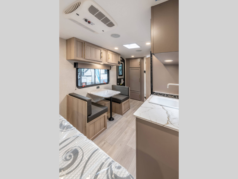 Sleeps 7 Slides 1 Length 22 ft 10 in Ext Width 7 ft 6 in Ext Height 9 ft 4 in Int Height 6 ft 6 in Interior Color Nomad, Mushroom Grey Hitch Weight 530 lbs GVWR 4800 lbs Dry Weight 3810 lbs Cargo Capacity 990 lbs Fresh Water Capacity 20 gals Grey Water Capacity 26 gals Black Water Capacity 26 gals Tire Size 15" Furnace BTU 20000 btu Number Of Bunks 2 Available Beds Queen Refrigerator Type 12V Refrigerator Size 8 cu ft Cooktop Burners 2 Number of Awnings 1 Axle Weight 3280 lbs LP Tank Capacity 20 lbs Water Heater Type Tankless AC BTU 13500 btu Awning Info 15' Power Axle Count 1 Number of LP Tanks 1 Shower Type Neo-Angled Similar Floorplans